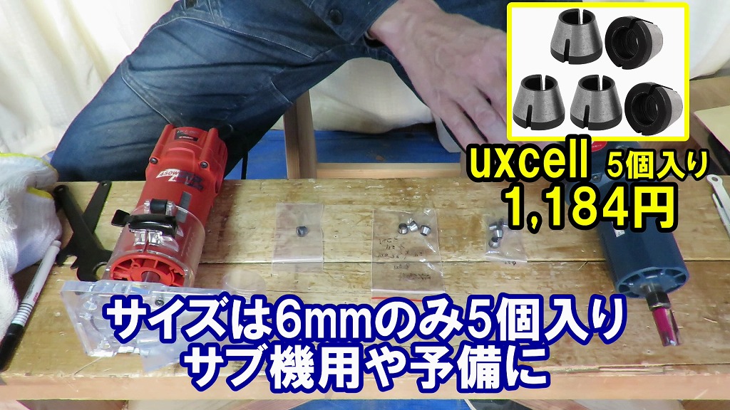 国内のメーカーのトリマーは6mmですが海外のメーカーのトリマーはコレットが6.35mmなので国内の6mmのビットを使う場合は6mmのコレットが必要になります。